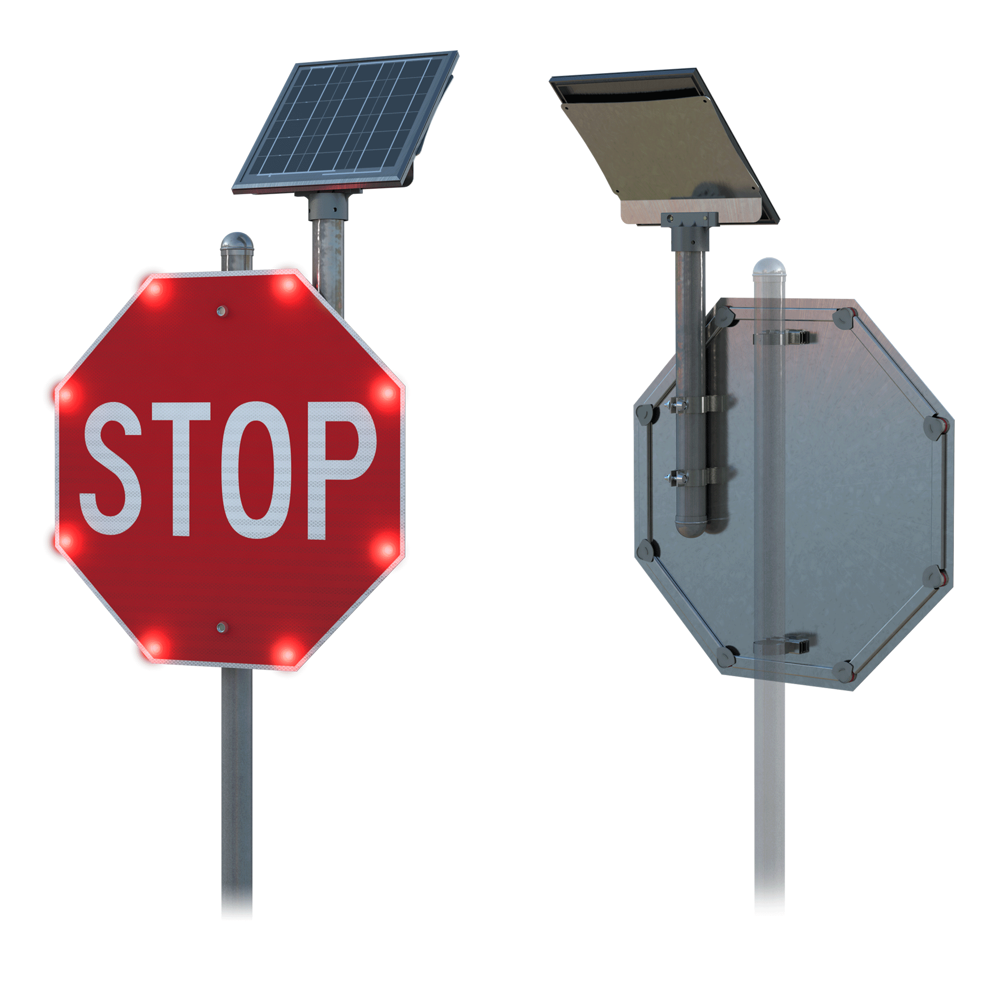 A BlinkerSign® features edge-lit, flashing LED warning lights, engineered to capture drivers' attention and increase roadway compliance while utilizing highly visible amber, red, orange or white LEDs, depending on the sign face.